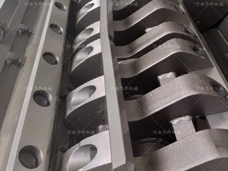 4、刀架優化設計,刀架螺旋分布,可分散碎料時受力度,減輕碎料時沖擊力,使得每刀的破碎剪切力更大。